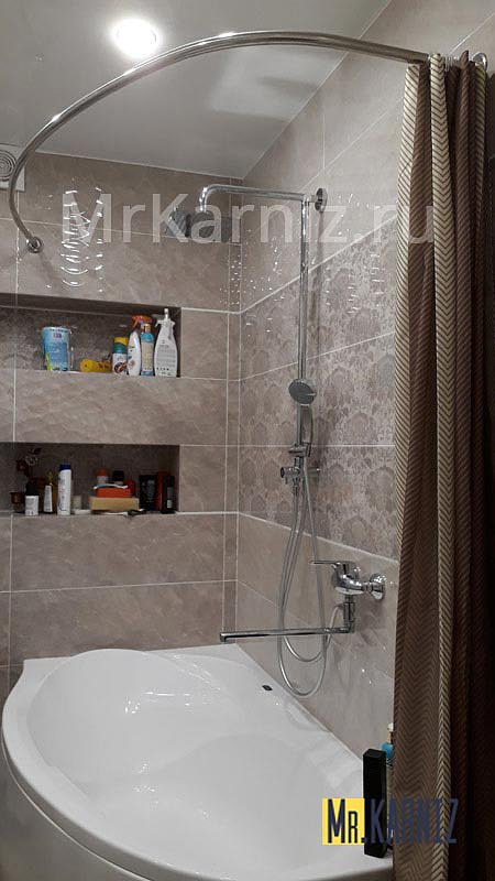 Дабы цельный карниз как можно более точно соответствовал внешнему контуру душевой, повторял все изгибы ванной, стоит приобрести модель для полукруглой либо ассиметричной емкости. На такие хромированные изделия Россия, в отличии от поставщиков зарубежных аналоговых товаров, дает гарантию три года.